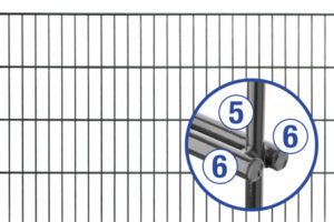 Es wird empfohlen die Gitter bis zu einer Höhe von 1630 mm mit dem standartmäßigen 30 mm Drahtüberstand nach unten zu montieren.